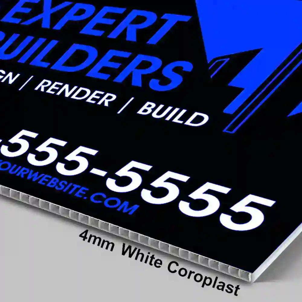Ideal for yard signs, event promotions, and directional signage, 4mm Coroplast signs deliver a professional look without the bulk. With their resilience and adaptability, these signs are your go-to choice for effective, budget-friendly outdoor marketing.